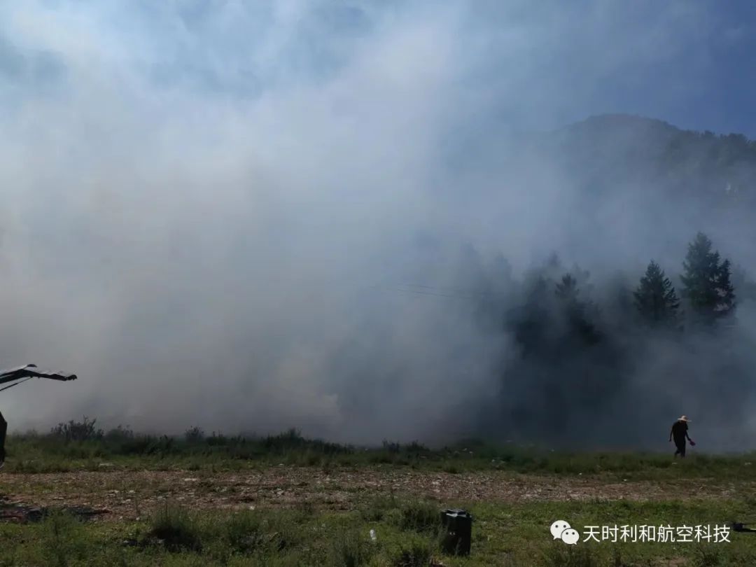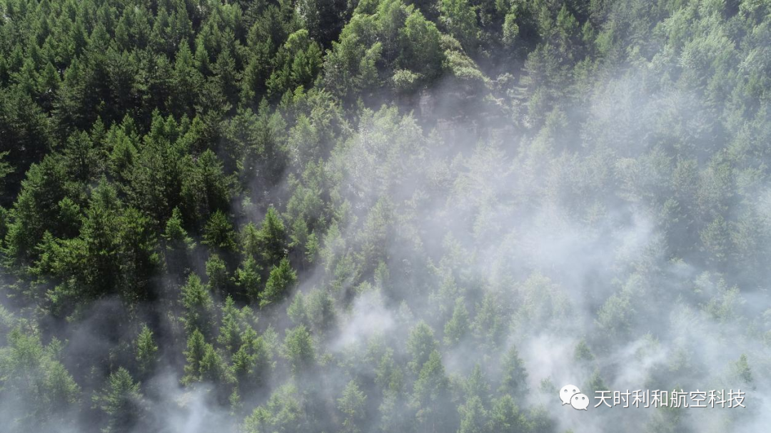 夏季清晨的第一縷霞光灑落在五臺(tái)山林區(qū),山上白霧埋陰壑,丹霞助曉光,林中濕潤(rùn)的空氣隨著霞光照射緩緩上升,此時(shí)無(wú)人機(jī)拖著長(zhǎng)長(zhǎng)的煙霧尾巴,從林區(qū)的低處飛過(guò),無(wú)人機(jī)借助清晨上升的空氣使機(jī)身噴出的煙霧快速的飄散出方圓幾公里,隨著自然風(fēng)的飄散彌漫在樹(shù)木周圍,與大自然的霧氣完美融合,形成云興霞蔚的壯觀景象;